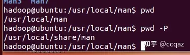 pwd -P # 显示出实际路径,而非使用连接(link)路径;pwd显示的是连接路径